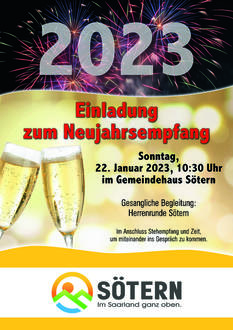 Am Sonntag, 22. Januar 2023 um 10:30 Uhr findet im Gemeindehaus erstmals ein Neujahrsempfang statt. Gemeinsam wollen wir das vergangene Jahr Revue passieren lassen und Ausschau auf 2023 halten. Hierzu ist die Bevölkerung herzlich eingeladen. Für einen kleinen Snack und Getränke ist gesorgt.