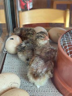 Am Mittwoch den 21. Februar brachte Eric Schmidt aus Walhausen einen Brutkasten in die Kita Sötern. Dieser sollte zwei Tage lang stehen, um die richtige Temperatur und Luftfeuchtigkeit zu bekommen. Am Freitagmorgen, wurden dann die befruchteten Eier von Eric Schmidt in den Brüter gelegt. Ab dann, wurde es spannend. Am Dienstagmorgen konnten wir die ersten Bruchstellen an zwei Eiern entdecken. Schnell schlüpfte das erste Küken und im Laufe der nächsten 24 Stunden neun weitere aus ihren Eiern. Die Kinder verbrachten viel Zeit damit, die frisch geschlüpften Küken zu beobachten. Eric Schmidt war immer bereit, die Fragen der Kinder zu beantworten. Am Freitagmorgen mussten wir uns dann von den Küken verabschieden.