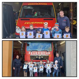 Am Montag dem 24.03.25 und am Dienstag dem 25.03.25 fuhren die Vorschulkinder der KiTa in Selbach zur Brandschutzerziehung nach Nohfelden. Dieses Jahr teilten wir die Vorschulkinder in 2 Gruppen ein. Gemeinsam mit ihren Erzieherinnen machten sie sich auf den Weg zur Nohfelder Feuerwehr. Dort angekommen erfolgte zunächst ein theoretischer Teil in dem allerlei zum Thema Brandschutz besprochen wurde. Wie entsteht ein Feuer, was sind die Aufgaben der Feuerwehr, was kann ich tun um einem Brand vorzubeugen, wofür sind Rauchmelden überhaupt gut und wie verhalte ich mich, wenn doch mal ein Feuer ausbricht? Ebenso durfte jedes Kind einen Notruf an den Brandschutzerzieher der Feuerwehr absetzen. Alle Kinder gaben ihren Namen, ihre Straße, ihren Ort und wo es genau brennt weiter. Natürlich war dieser Anruf nur eine Probe. Alle Kinder setzten den Notruf aber gekonnt ab. Im Anschluss durften wir uns die Feuerwehrautos ansehen und sogar mit der Handspritze Wasser spritzen. Zu guter Letzt bekam jedes Vorschulkind eine Urkunde mit nach Hause. Viele kleine Brandschutzhelfer verließen an diesen beiden Tagen die Feuerwehr.