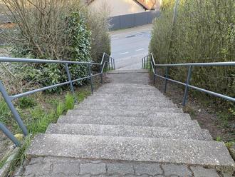 In der zurückliegenden Woche wurde das Treppengeländer von der Kirche zur Hauptstraße hinab vom Bauhof der Gemeinde Nohfelden renoviert.