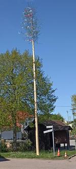 Hurra, ein prächtiger Maibaum schmückt dieses Jahr wieder unsere Ortsmitte. Vielen Dank an die FFW Eisen, dem Förderverein der FFW für das Aufstellen. Besonderer Dank ergeht an Rainer Eifler für die maschinelle Unterstützung beim Stellen des Baumes.
