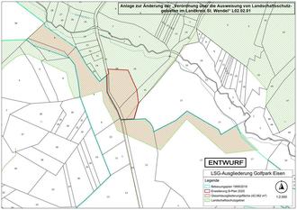Das Ministerium für Umwelt, Klima, Mobilität, Agrar und Verbraucherschutz – Oberste Naturschutzbehörde - beabsichtigt auf Grund der § 22 und 26 des Bundesnaturschutzgesetzes vom 29. Juli 2009 (BGBl. I. S. 2542) in Verbindung mit § 20 des Saarländischen Naturschutzgesetzes vom 05. April 2006 (Amtsbl. S. 726), jeweils in der derzeit gültigen Fassung, Verordnung über die Ausweisung von Landschaftsschutzgebieten im Landkreis St. Wendel vom 12. August 1976 (Amtsbl. S. 905), dahingehend zu ändern, dass folgende Flurstücke in der Gemeinde Nohfelden, Gemarkung Eisen, entsprechend der Darstellung der Übersichtskarte, nicht mehr Bestandteil des Landschaftsschutzgebietes L 02.02.01 sind: