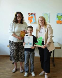Für seine beeindruckende Leseleistung erhielt Liam den Lesedino-Award, einen Bücherscheck über 75 Euro sowie ein Buchgeschenk.