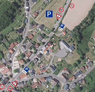 | 2. | Die Zuwegung zum Gemeindezentrum wird von der Hunsrückstraße, bzw. aus der Straße „Zum Rothenberg“ kommend für den Durchgangsverkehr gesperrt. Ausnahme: Anlieger frei. Es sind die VZ 600 StVO (Absperrschranke mit 3 gelben Leuchten), VZ 250 StVO (Verbot für Fahrzeuge aller Art) mit dem Zusatzzeichen 1020-30 (Anlieger frei) zu zeigen. |