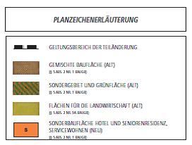 Gegenstand der Teiländerung des Flächennutzungsplanes ist die Darstellung einer Sonderbaufläche, um das bestehende Hotel planerisch zu sichern und die Errichtung einer Seniorenresidenz mit Servicewohnen planerisch vorzubereiten. Aktuell stellt der Flächennutzungsplan gemischte Baufläche, Flächen für die Landwirtschaft sowie Sondergebiet und Grünfläche dar.