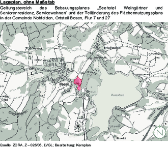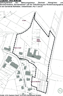 zur Teiländerung des Flächennutzungsplanes der Gemeinde Nohfelden für den Bereich des Bebauungsplanes „Seehotel Weingärtner und Seniorenresidenz, Servicewohnen“ in Flur 7 und 27 der Gemarkung Bosen – ohne Maßstab