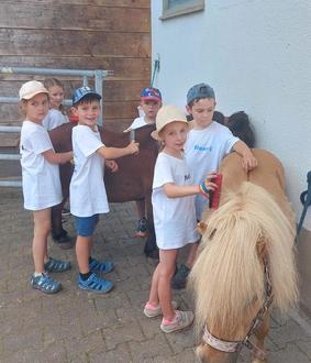 Das Highlight, vor allem für die Mädels, war natürlich das Putzen und Striegeln der beiden Ponys.