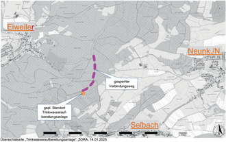 Betroffen ist eine Strecke von ca. 800 m von der Einfahrt der Landstraße L 326 zwischen Eiweiler und Neunkirchen-Nahe bis in den Bereich des Funkmastes (siehe beigefügte Übersichtskarte).