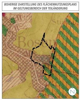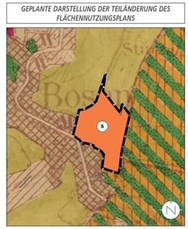 Der Flächennutzungsplan stellt den Geltungsbereich des Bebauungsplanes derzeit noch als gemischte Baufläche, Flächen für die Landwirtschaft sowie Sondergebiet und Grünfläche dar. Der vorliegende Bebauungsplan widerspräche aktuell damit dem Entwicklungsgebot nach § 8 Abs. 2 BauGB, wonach Bebauungspläne aus dem Flächennutzungsplan zu entwickeln sind. Aus diesem Grund wird für den Geltungsbereich des Bebauungsplans der Flächennutzungsplan im Parallelverfahren gem. § 8 Abs. 3 BauGB teilgeändert.