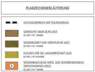 | • | Erhöhung der festgesetzten Zahl der Vollgeschosse und der festgesetzten Höhe baulicher Anlagen im Bereich der geplanten Seniorenresidenz, |