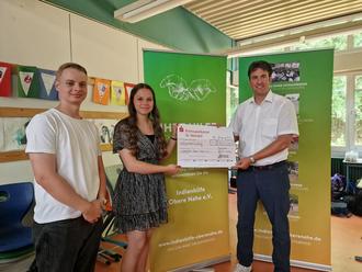 Stellvertretend für den diesjährigen Abi-Jahrgang 2023 (im Oberstufenverbund mit der Gemeinschaftsschule Freisen) überreichten Lilly Sanna und Aljoscha Seitz den symbolischen Scheck.