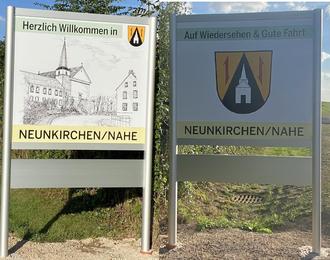 wie die meisten sicherlich schon bemerkt haben, konnten bereits in der vorletzten Woche an den Ortseingängen aus Richtung Selbach und aus Richtung Gonnesweiler neue „Willkommenschilder“ angebracht werden. Diese zeigen neben guten Wünschen bei der Ein- und Ausfahrt in und aus Neunkirchen/Nahe auf der Vorderseite eine das Dorfbild prägende Ansicht und auf der Rückseite unser Wappen. Im unteren Bereich wurde die Möglichkeit geschaffen, zukünftig auf wiederkehrende Veranstaltungen wie z.B. unsere Kirmes aufmerksam machen zu können. Perspektivisch ist ggf. auch eine Aufstellung entsprechender Schilder an den anderen Dorfein- und -ausgängen geplant.