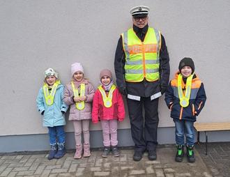 Vergangene Woche besuchte Herr Andler, Verkehrspolizist, die Maxi-Club Kinder. Zu Beginn wurde über wichtige Regeln im Straßenverkehr gesprochen. Diese wurden dann zunächst im Bewegungsraum ausprobiert. Anschließend ging es nach draußen. Die Kinder übten, wie eine Straße überquert wird, was an der Bushaltestelle zu beachten ist und schließlich wie man über einen Zebrastreifen geht. Vielen Dank an Herr Andler für diesen lehrreichen Vormittag, an dem die Kinder mit viel Spaß teilgenommen haben.