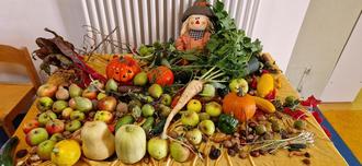 Auch in diesem Jahr gestalteten die Kinder und Eltern der Kita in Selbach, gemeinsam mit ihren Erzieher/innen, einen Erntedanktisch. Die Kinder konnten Obst oder Gemüse aus dem eigenen Garten mitbringen oder auch in Omas/Opas Garten nach Herbstschätzen schauen. Wer keinen Garten hatte, durfte auch beim Spazieren gehen nach tollen Fundstücken Ausschau halten. Schnell füllte sich der Gabentisch mit den schönsten Dingen. Mit den Kindern wurden die Obst- und Gemüsesorten angeschaut und im Stuhlkreis besprochen. Anschließend wurde alles verwertet. Es wurde Gemüsesuppe gekocht, Kürbis- Apfelkuchen gebacken, Apfelmus gekocht und Traubengelee hergestellt. Bei einem gemeinsamen Mittagessen ließen es sich die Kinder wohl schmecken. Vielen Dank an die tolle Unterstützung von euch Kindern, Eltern und Großeltern bei dieser wertvollen Aktion.