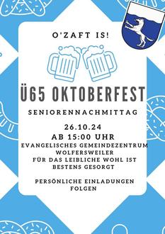 Wie in unserer Sitzung vom 11.09. beschlossen, werden wir auch in diesem Jahr einen Seniorennachmittag veranstalten. Dieses Jahr mit dem Thema "Oktoberfest". Bitte merken Sie sich den Termin bereits vor. Es werden zeitnah die Einladungen verteilt werden.