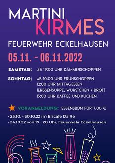 Am 05. und 06. November findet die diesjährige Martinikirmes in den Räumlichkeiten der Feuerwehr Eckelhausen statt.