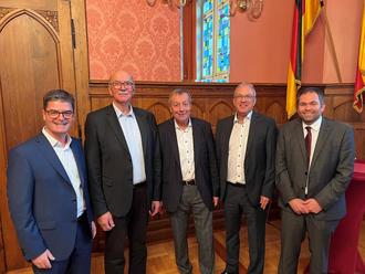 Von links nach rechts: Bürgermeister Andreas Veit, Werner Wilhelm, Friedbert Becker, Landrat Udo Recktenwald, Alexander Besch