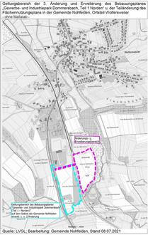Der Gemeinderat der Gemeinde Nohfelden hat in seiner Sitzung am 06.07.2023 die Änderung des Flächennutzungsplanes der Gemeinde Nohfelden für den Bereich der 3. Änderung und Erweiterung des Bebauungsplanes „Gewerbe- und Industriepark Dommersbach, Teil 1 Norden“ in Flur 24 der Gemarkung Wolfersweiler beschlossen.