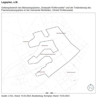Jedermann kann den Bebauungsplan „Solarpark Wolfersweiler”, bestehend aus Planzeichnung (Teil A), dem Textteil (Teil B), der Begründung, dem dazugehörigen Umweltbericht, sowie der zusammenfassenden Erklärung, im Rathaus der Gemeinde Nohfelden, Bauamt, Zimmer 1.12, während der allgemeinen Dienststunden einsehen und über dessen Inhalt Auskunft verlangen.