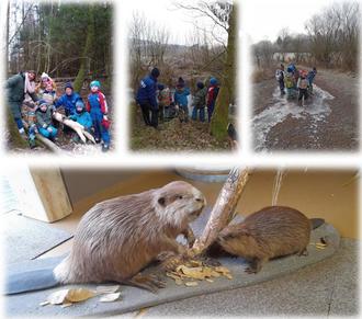 Bei kaltem, jedoch sonnigem Wetter machten wir uns zusammen auf den Weg zum Freisbach. Unterwegs stärkten wir uns mit einem Picknick und warmen Getränken. Entlang des Baches konnten die Kinder Fressplätze, Biberpfade, Fraßspuren an den Bäumen, den Damm und die Biberburg entdecken. Herr Kollmann brachte den Kindern sehr interessant und kindgerecht das Leben der Biber und deren Besonderheiten näher!
