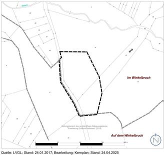 Die genauen Grenzen des Geltungsbereiches des Bebauungsplanes sind dem beigefügten Lageplan zu entnehmen. Er umfasst eine Fläche von 1,0 ha.