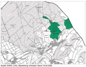 Geltungsbereich des Bebauungsplanes „2. Erweiterung Golfpark Bostalsee“ in Flur 11 der Gemarkung Eisen; genordet, ohne Maßstab