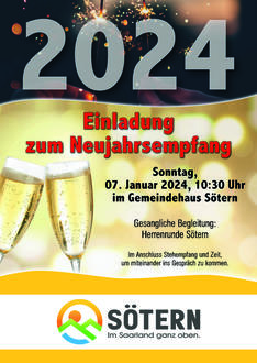 Am Sonntag, 07. Januar 2024 um 10:30 Uhr findet im Gemeindehaus der Neujahrsempfang statt. Gemeinsam wollen wir das vergangene Jahr Revue passieren lassen und Ausschau auf 2024 halten. Als Gäste haben Torsten Lang, Staatssekretär im saarländischen Ministerium für Inneres, Bauen und Sport sowie Bürgermeister Andreas Veit ihr Kommen zugesagt. Die gesangliche Begleitung übernimmt die Herrenrunde. Die Bevölkerung ist herzlich zu der Veranstaltung eingeladen. Für einen kleinen Snack und kühle Getränke ist ebenfalls gesorgt.