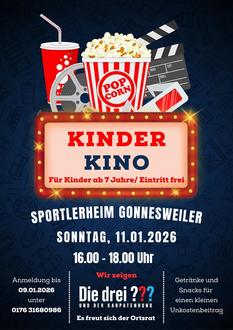 Der Ortsrat Gonnesweiler lädt alle Kinder ab 6 Jahren herzlich zu einem spannenden Kinonachmittag ein! Kommt vorbei und erlebt gemeinsam mit euren Freunden einen tollen Film auf großer Leinwand.