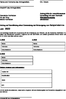 Die Formblätter finden Sie auch auf der Homepage der Gemeinde Nohfelden unter der Rubrik „Rathaus & Service“ / „Alle Formulare, Richtlinien und Satzungen“ unter dem Punkt „Zuschüsse“.
