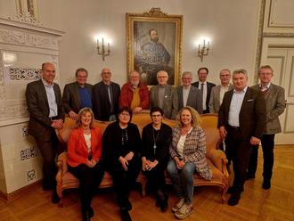 Vertreter der Gesellschafterversammlung der neu gegründeten Hunsrück-Nahe Tourismus v.l.n.r. vordere Reihe: Anke Beilstein (Landrätin Kreis Cochem-Zell), Iris Müller (stellvertretende Geschäftsführerin Hunsrück-Nahe Tourismus), Katja Hilt (Geschäftsführerin Hunsrück-Nahe Tourismus), Bettina Dickes (Landrätin Kreis Bad Kreuznach), Miroslaw Kowalski (Landrat Kreis Birkenfeld) v.l.n.r. hintere Reihe: Volker Boch (Landrat Rhein-Hunsrück Kreis), Dr. Michael Vesper (Kreis Bad Kreuznach), Michael Pohl (Kreis Bad Kreuznach), Klaus Gewehr (Rhein-Hunsrück Kreis), Erwin Malkmus (Kreisbeigeordneter Kreis Mainz-Bingen), Hans-Josef Bracht (Rhein-Hunsrück Kreis), Andreas Hackethal (Landrat Bernkastel-Wittlich), Stefan Ding (Bürgermeister Hermeskeil, Tourismusverband Hunsrück-Nahe), Uwe Engelmann (Bürgermeister Nahe-Glan, Tourismusverband Hunsrück-Nahe)