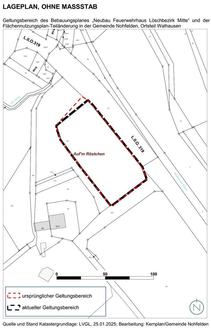 Der Gemeinderat hat in seiner Sitzung am 20.02.2025 in öffentlichem Sitzungsteil den Entwurf zur Teiländerung des Flächennutzungsplanes im Bereich des Bebauungsplanes „Neubau Feuerwehrhaus Löschbezirk Mitte“ in Flur 1 der Gemarkung Walhausen, bestehend aus der Planzeichnung und Begründung mit Umweltbericht gebilligt. Der Geltungsbereich der Flächennutzunsplanteiländerung wird auf Grund von natur- und artenschutzeschrechtlichen Gründen, welche im Zuge der durchgeführten frühzeitigen Beteiligung (§§ 3 Abs. 1, 4 Abs. 1 i. V. m. § 2 Abs. 2 BauGB) vorgebracht wurden, angepasst/verkleinert.