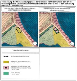 Mit dieser Bekanntmachung wird die Teiländerung des Flächennutzungsplanes für den Bereich des Bebauungsplanes „Neubau Feuerwehrhaus Löschbezirk Mitte“ in 1 der Gemarkung Walhausen wirksam.