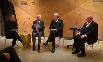 Podiumsrunde zu 20 Jahre Begegnungshaus Gedenkstätte SS-Sonderlager KZ Hinzert mit Bernhard Kukatzki, Albert Hansen, Kurt Beck und Dieter Burgard (v.l.)