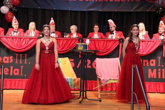 Pünktlich um 19.11 Uhr zogen die Garden gemeinsam mit dem Elferrat in die Halle ein und eröffneten offiziell die Sitzung. In ihren Begrüßungsworten hießen Diana und Michaela das Publikum willkommen, bevor das Jugendprinzenpaar Mila I. und Lana I. sowie das Prinzenpaar Andreas III. und Manuela I. die Narrenschar auf die Galasitzung einstimmten.