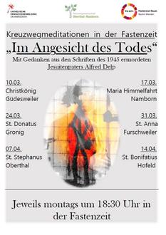 | Christkönig, Güdesweiler | 18.30 | Kreuzwegmeditation „Im Angesicht des Todes“ |