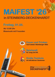 Am 01.05.2026 lädt der Musikverein Steinberg-Deckenhardt herzlich zum traditionellen Maifest rund um die Musikwerkstatt ein!