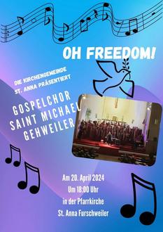 | St. Anna, Furschweiler | 18.00 | Konzert des Gospelchores Saint Michael Gehweiler |