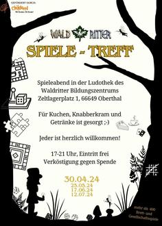 Die Waldritter laden herzlich zum nächsten Brettspieletreff im Waldritter-Bildungszentrum Saar ein! Am 30.04.24, sowie an weiteren Terminen am 25.05.24, 17.06.24 und 12.07.24, öffnen sich die Türen der Waldritter-Ludothek für alle Spielebegeisterten von 17:00 Uhr bis 21:00 Uhr.