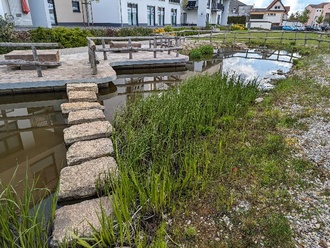 Die im Teich befindlichen Fische (unter anderem ein stattlicher Goldfisch und zwei Aale) und Krebse wurden selbstverständlich beim Ablassen des Wassers von den Mitarbeitern des Gemeindebauhofes „gerettet“ und konnten nach Abschluss der Arbeiten wieder im Wassergarten eingesetzt werden.