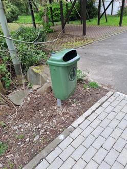 Ein weiter Mülleimer wurde auf dem Weg zwischen der Humweilerstraße und der Mombergstraße angebracht. Dieser freut sich über alle Tütchen mit Hundekot und anderem Müll.