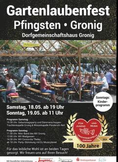der Mai ist (endlich) gekommen und die Bäume schlagen aus, das Wetter schlägt aber weiterhin leider noch Kapriolen. Dennoch beginnt im Mai wie jedes Jahr in Gronig unsere Festsaison. Den Anfang macht unser Musikverein mit dem traditionellen Gartenlaubenfest am Pfingstwochenende, Samstag, den 18.05., und Sonntag, den 19.05. Auch im Namen des Ortsrates lade ich euch alle herzlich dazu ein, mit dem Musikverein am Dorfgemeinschaftshaus dieses schöne Fest zu feiern, insbesondere, da der Musikverein dieses Jahr sein hundertjähriges Bestehen feiert. Mit seinem Erscheinen und seiner Unterstützung trägt jeder auch einen kleinen Teil dazu bei, dass zu den hundert, wie wir hoffen, noch viele Jahre dazukommen.