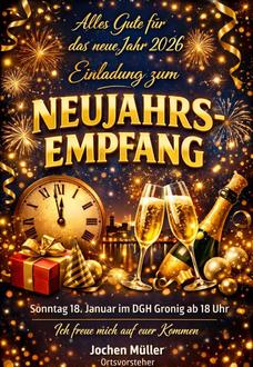 Am 18.1. findet der Neujahrsempfang im DGH statt, zu dem jeder herzlich eingeladen ist.