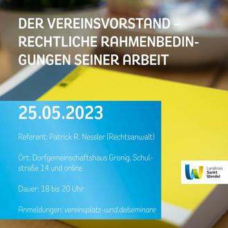 Vorstandsarbeit ist anspruchsvoll. Trotz guter Absichten kann sie gelegentlich zu Problemen führen, etwa durch Unkenntnis der zuweilen komplizierten rechtlichen Regelungen. Dies kann zu Auseinandersetzungen führen: mit Mitgliedern, dem Vorstand, dem Finanzamt oder mit Behörden und Unternehmen. Ein Seminar des Verbundprojektes „Hauptamt stärkt Ehrenamt" klärt daher über die rechtlichen Rahmenbedingungen der Vorstandsarbeit auf: am Donnerstag, 25. Mai, 18 Uhr, Dorfgemeinschaftshaus Gronig, Schulstraße 14, 66649 Oberthal. Eine Online-Teilnahme ist ebenfalls möglich. Die Teilnahme ist kostenlos, die Teilnehmerzahl begrenzt.