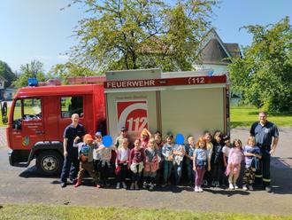 Jens Berwian von der freiwilligen Feuerwehr in Güdesweiler, hat für die Wackelzähne der KiTa Güdesweiler an drei Tagen Brandschutzerziehung durchgeführt. Die Kinder haben gelernt, einen Notruf abzusetzen, sie haben den Unterschied zwischen gutem und schlechtem Feuer, sowie die Flucht- und Rettungswege kennengelernt. Am dritten Tag haben die Kinder das Feuerwehrgerätehaus besichtigt und konnten sogar im Löschfahrzeug sitzen. Natürlich durfte auch das Spritzen mit dem Schlauch nicht fehlen. Die Wackelzähne und das Team der KiTa Waldwichtel bedanken sich bei Jens Berwian und Markus Backes von der freiwilligen Feuerwehr Güdesweiler für drei informative und spannende Tage.