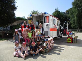 Die Kinder der Kindertagesstätte Waldwichtel hatten Besuch vom Rettungsdienst. Einen ganzen Vormittag lang, bekamen die Kinder spannende Informationen rund um das Thema Rettungsdienst und Rettungswagen. Kevin Schmitt hat den Kindern gemeinsam mit einigen Vertretern aus dem Elternausschuss den Rettungswagen gezeigt und die Kinder spielerisch mit seinem Beruf vertraut gemacht.