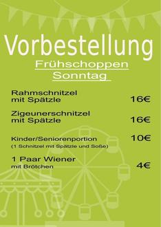 Zum Frühschoppen wird auch Mittagessen angeboten; die notwendigen Vorbestellungen hierzu können gerne im Gasthaus Andler getätigt werden.
