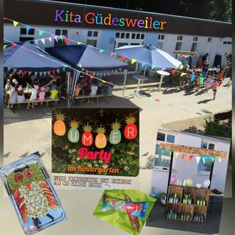 üAls Vorgeschmack auf die Sommerferien hat der Elternausschuss der Kindertagesstätte Güdesweiler für die Kinder eine Summer-Party veranstaltet. Bei heißen Temperaturen konnten sich die Kinder am leckeren Buffet bedienen und sich mit gekhlten Getränken und einem leckeren Eis eine kleine Abkühlung verschaffen.
