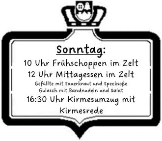 Christel Will hat sich für dieses Jahr noch einmal bereiterklärt, ihre Gastronomie auf den Kirmesplatz zu verlegen und das Festzelt betreiben. Neben Getränken wird sie auch für das leibliche Wohl an allen Kirmestagen sorgen. Am Samstag wird die Sängerin „Tanja“ im Festzelt auftreten. Auf dem Kirmesplatz erwarten Sie unsere Schausteller mit Autoscooter, Kinderkarussell, Schieß-, Spielzeug- und Süßwarenstand. Ebenso wird es einen Weinstand geben, welcher von Tanja‘s Weinstübchen betrieben wird.