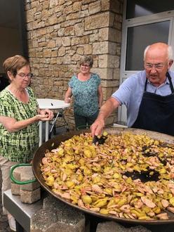 Dieses Mal hatte sich das Team vom Spielenachmittag etwas Neues einfallen lassen. Nämlich eine herzhafte Lyonerpfanne aus einer riesigen eisernen Pfanne. Gebruzzelt auf dem Gasgrill, draußen im Hof. Tatsächlich hatten zwei unserer Gäste noch nie eine Lyonerpfanne gegessen und waren daher überrascht, wie lecker sowas sein kann. Unser Koch Siggi hatte sich auch besondere Mühe gegeben und wir Frauen vom Team, wir haben es uns nicht nehmen lassen, die Zutaten wie Lyoner, Zwiebeln, Kartoffel, Schinken usw. gemeinsam zu schnibbeln und zu verarbeiten. Und so schmeckte die Pfanne „Einfach Spitze“.