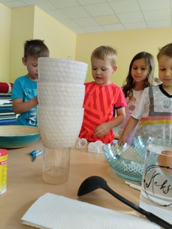 Am 18. und 19. Juli 2023 besuchte die Firma Wassertechnik Massar GmbH die KiTa Waldwichtel und führte mit den Vorschulkindern verschiedene Angebote zum Thema Wasser durch. Michael Massar zeigte den Kindern ein mit verschmutztem Wasser gefülltes Glas, welches er anschließend in den obersten Pflanzkübel füllte. Das verschmutzte Wasser wurde zuerst durch den mit Kies gefüllten Pflanzkübel, danach durch den Sand über den mit Kohle gefüllten Kübel und zuletzt durch den Kaffeefilter gefiltert, sodass das verschmutzte Wasser sichtbar sauberer war. Die Kinder hatten sichtlich Spaß bei der Durchführung der verschiedenen Angebote und erhielten zum Abschluss ein Teilnahmediplom.